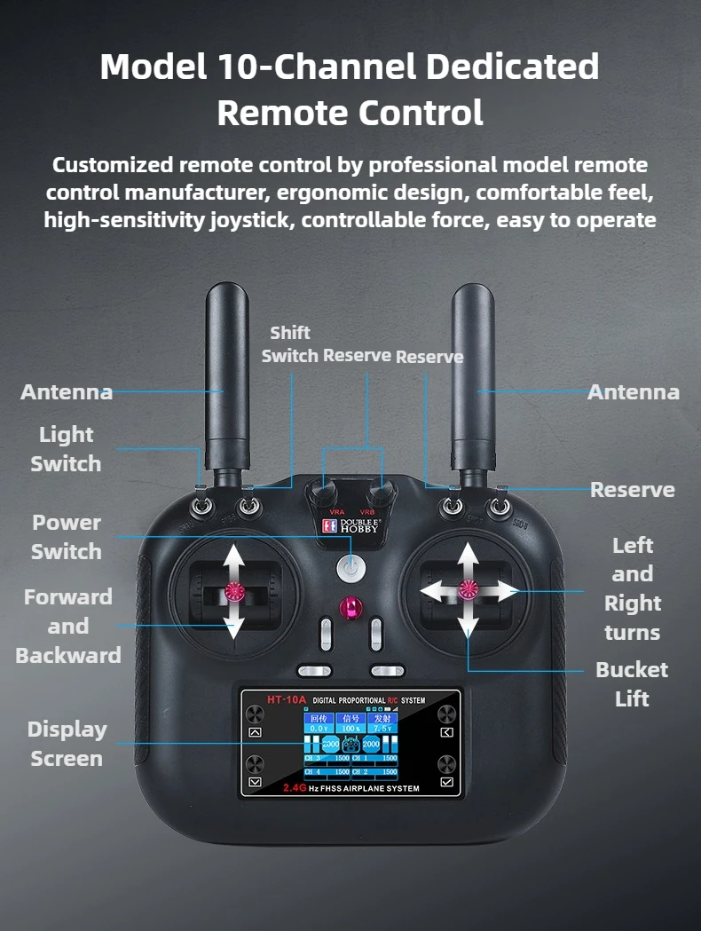 10-channel 2.4GHz remote control with reserved channels for future upgrades and modifications